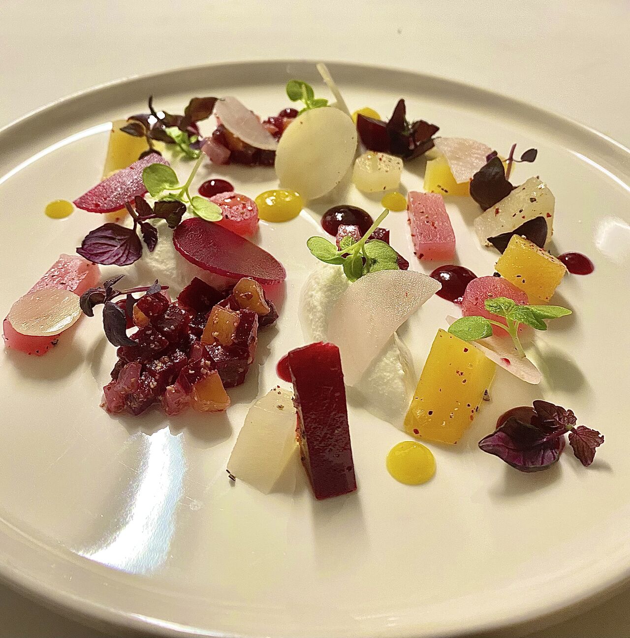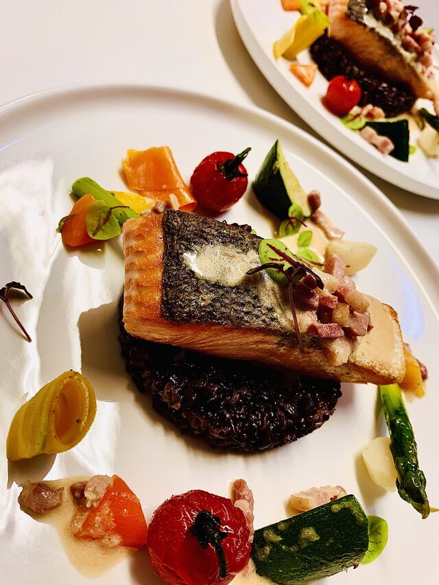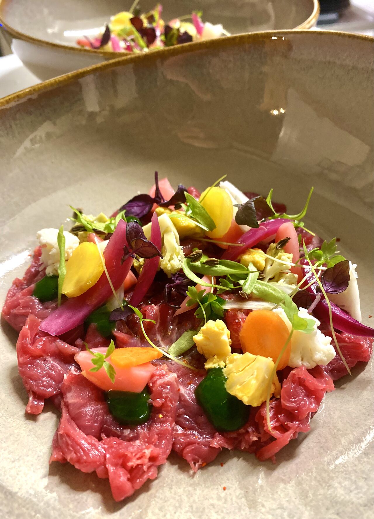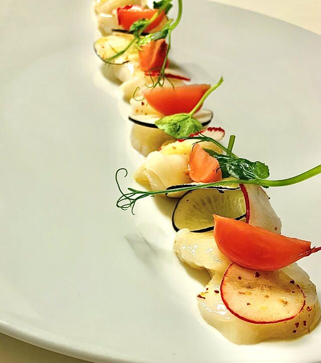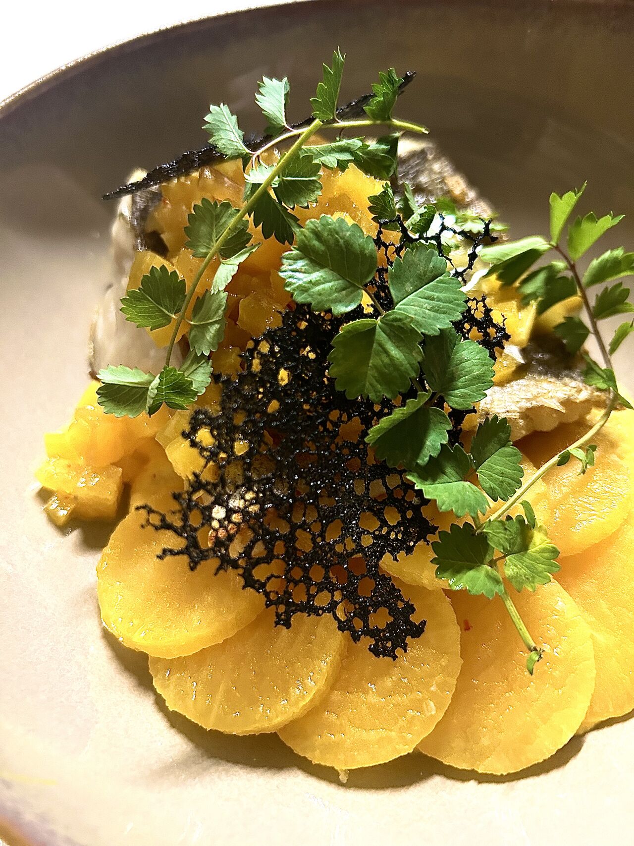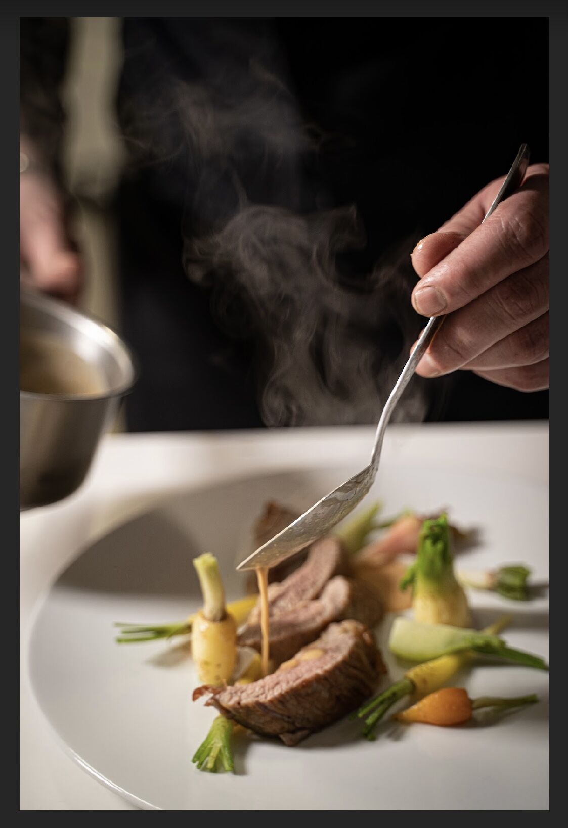 Alors que le produit tient une place centrale en cuisine, notre carte évolue au fil des saisons. Ici, la matière première donne le tempo. Elle reste une véritable source d’inspiration pour créer nos plats. Nous accordons également une attention toute particulière à l’équilibre dans nos assiettes. De la texture à la saveur en passant par l’assaisonnement, rien n’est laissé au hasard.