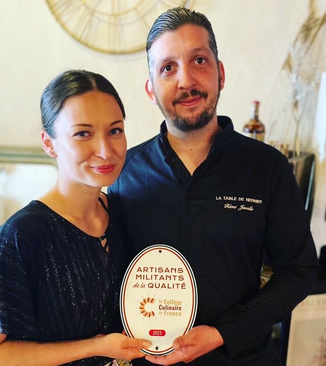 Rémi, chef cuisinier et Clara, maître d’hôtel ont choisi de donner vie à leur table au cœur de Nernier, une adresse confidentielle et préservée sur les rives du lac Léman. Ce duo au sourire communicatif partage une complicité sans faille et une seule et même vision de la cuisine. Selon eux, il s’agit de la clé pour créer une adresse tout à fait authentique.« Fils de restaurateur, la cuisine me suit depuis toujours. Aujourd’hui, je concrétise mes plus belles idées à la Table de Nernier à travers des plats toujours cuisinés avec bonheur. » Rémi